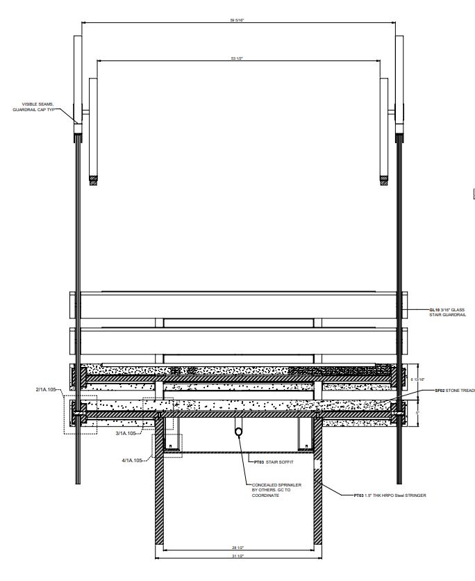 Feature stair for wealth management firm with steel plate stringers and stone treads.