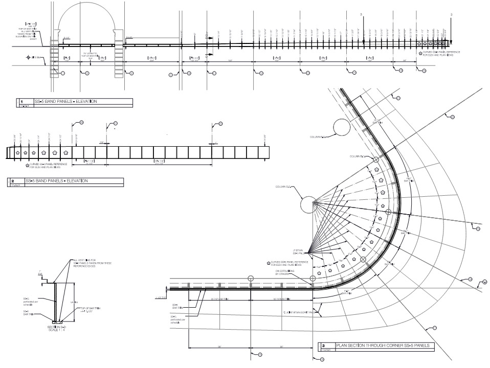 This 140 foot long canopy is a feature element of the newly renovated BAM Harvey theater in Brooklyn. Caliper provided fabrication and installation as well as design assist services to help ensure constructability prior to bid. Engineering was provided by Eckersley O'Callaghan Engineers.