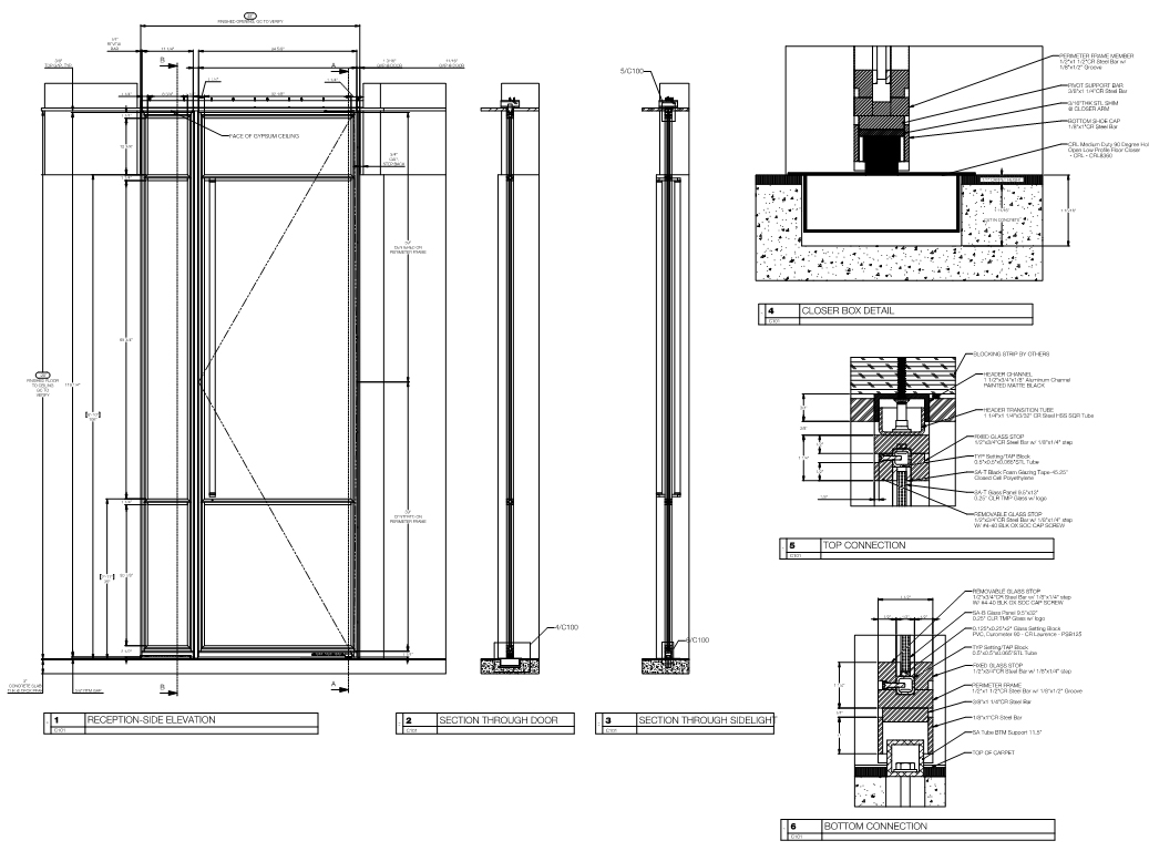Custom steel and glass partitions for a Manhattan office using a custom made steel pultrusion.